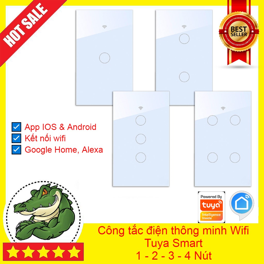 Công tắc điện thông minh Tuya Smart điều khiển qua WIFI 1.2.3.4 Nút Ấn free ship